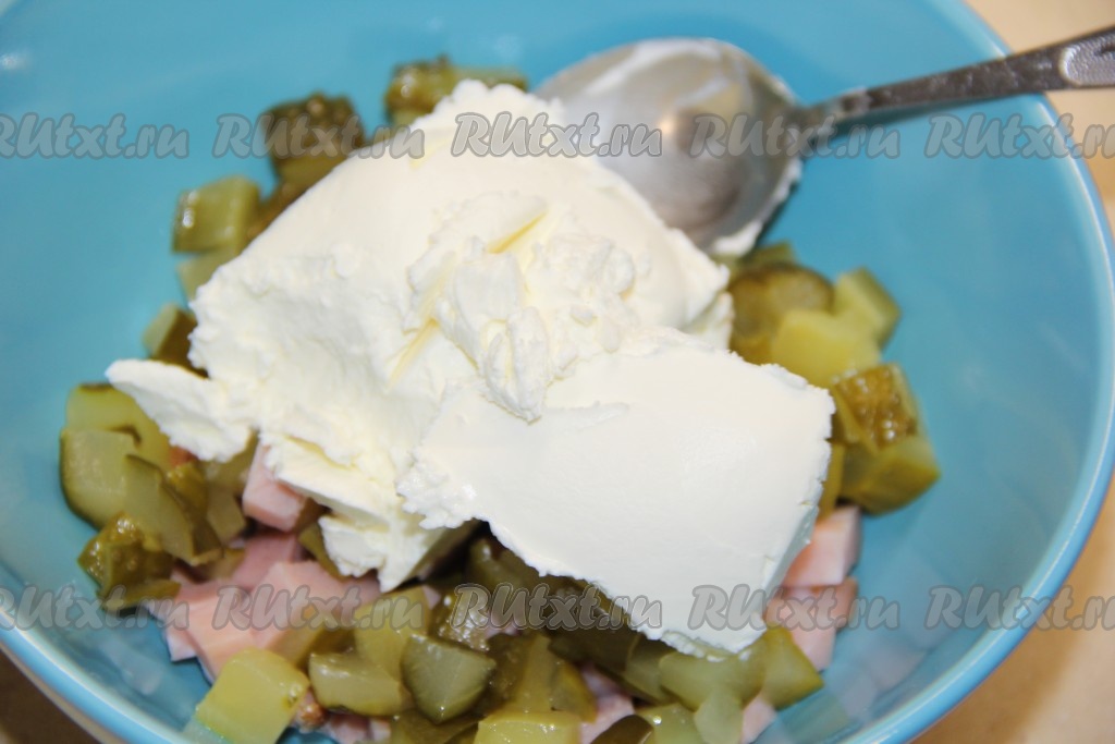 Добавить 2 столовые ложки творожного (или плавленного) сыра или 1 столовую ложку майонеза.