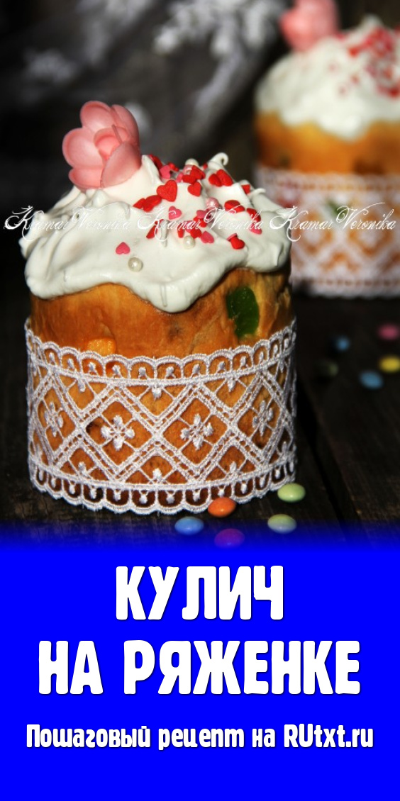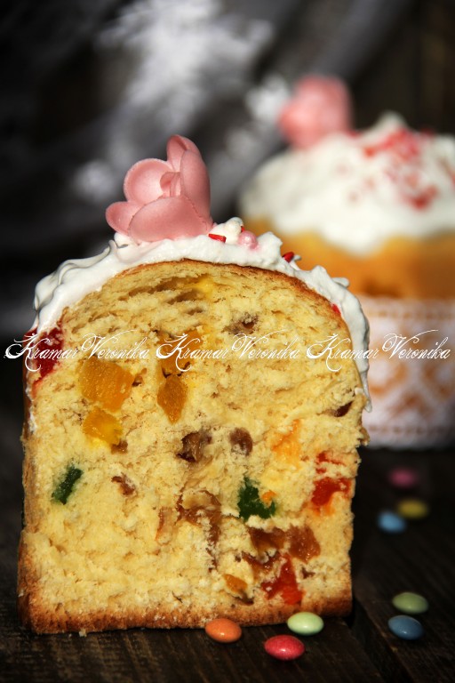 Скоро наступит Светлый праздник Пасхи. Из всевозможных вариантов теста для куличей предлагаю вам попробовать удачный рецепт куличей, замешанных на ряженке. Выпечку можно дополнить цукатами, орехами или изюмом (я взяла микс из цукатов и изюма). Тесто можно замесить руками, с помощью хлебопечки или кухонного комбайна. Куличи на ряженке получаются очень вкусными, нежными, с влажной текстурой. Украсить их можно белковой или сахарной глазурью (я украшала белковой).