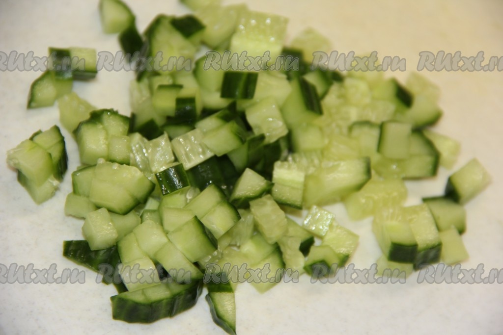 Свежий огурец вымыть и нарезать на небольшие кубики.