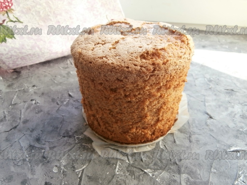 Дать бисквиту немного остыть в форме, провести острым ножом по краям и аккуратно вынуть. Дать бисквитному куличу полностью остыть.