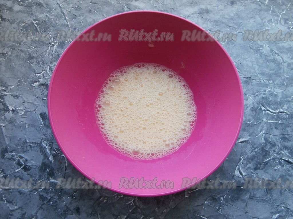 Далее всыпать ванильный сахар и, постепенно всыпая обычный сахар, продолжать взбивать смесь миксером до получения светлой, пышной, густоватой массы и растворения сахара (взбивать 3-5 минут).