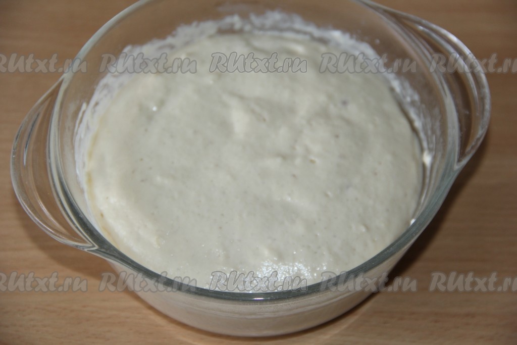 Оставить тесто в тёплом месте на 2 часа. Тесто увеличится в объёме раза в 2.