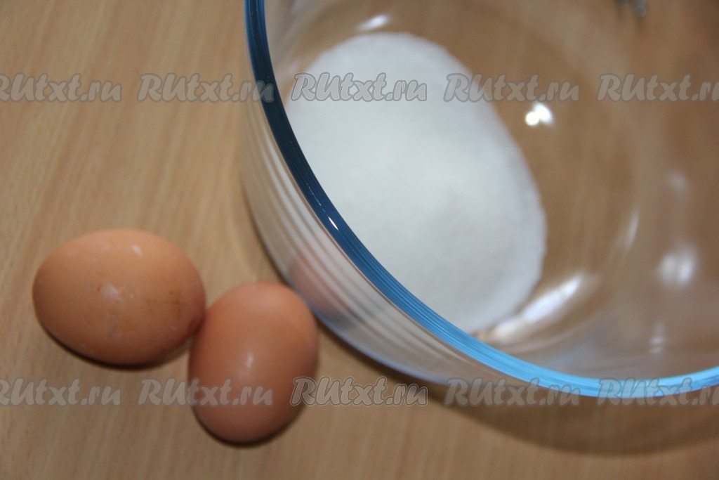 Теперь можно приступать к замешиванию теста, для этого в глубокой миске нужно соединить яйца и сахар.