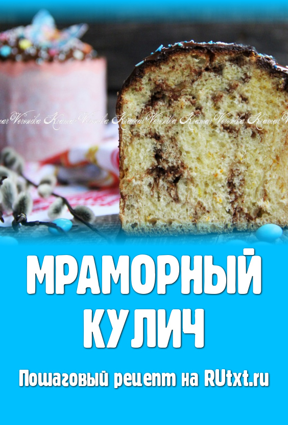 В преддверии Светлого праздника Пасхи многие пекут куличи в домашних условиях. И очень хочется, чтобы выпечка получилась и вкусной, и красивой. Рецептов куличей огромное множество. Предлагаю рецепт очень вкусного, красивого, мягкого, волокнистого мраморного кулича. Мраморные разводы можно сформировать из растопленного шоколада или из смеси какао и воды. Верх кулича можно украсить любой глазурью, я покрыла кулич растопленным шоколадом. Такая выпечка будет отлично смотреться на пасхальном столе, а её вкус несомненно понравится и вам, и вашим близким!