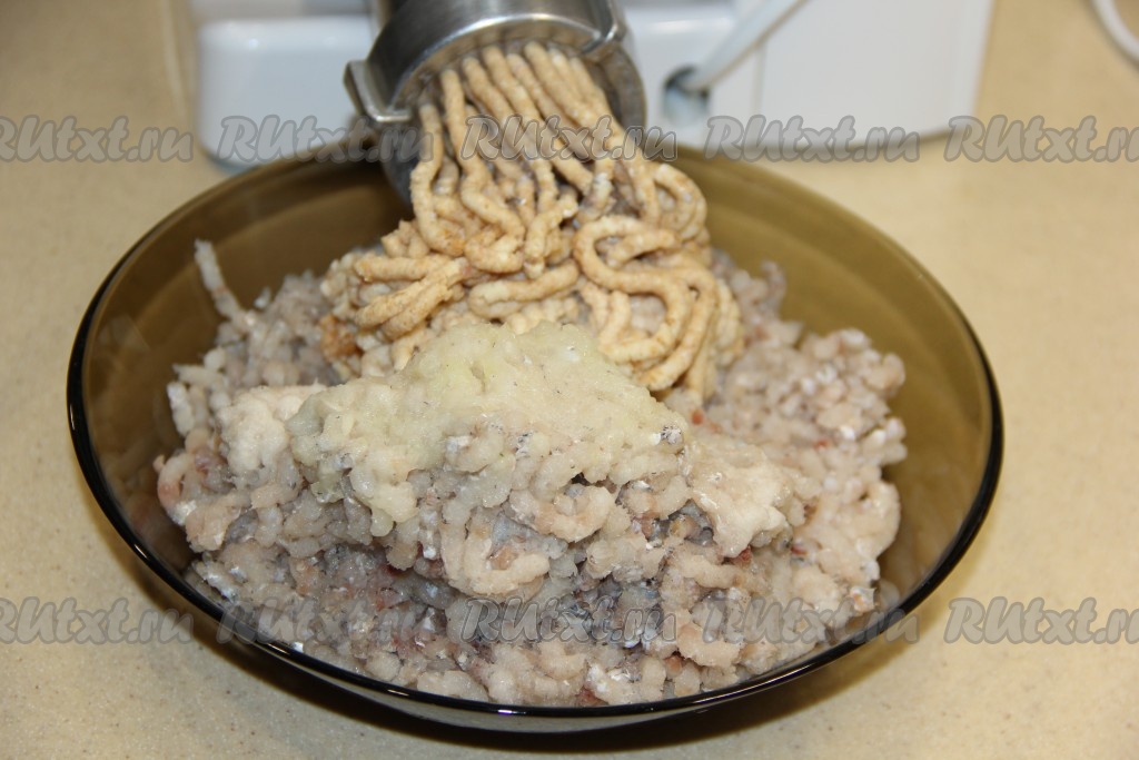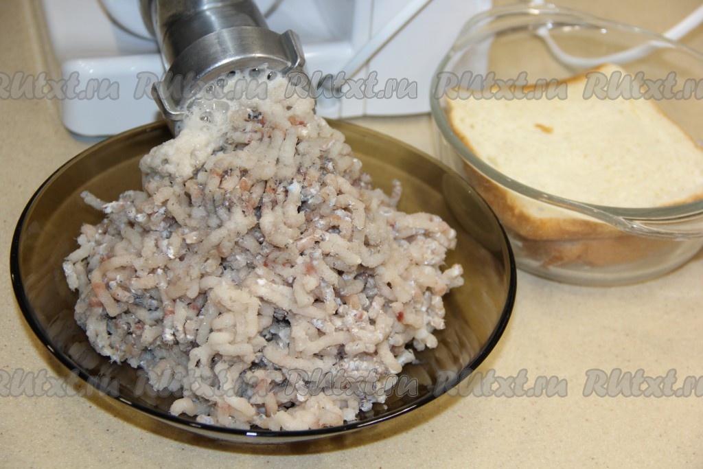 Луковицу и хлеб, отжатый от молока, тоже пропустить через мясорубку.