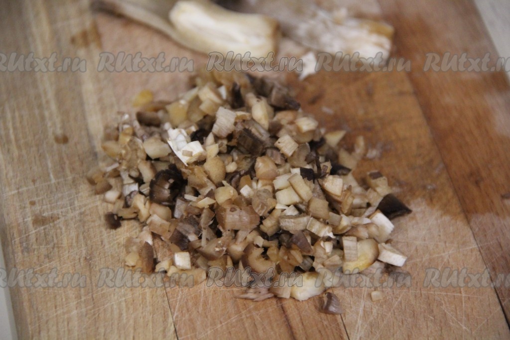 Ножки шампиньонов, которые мы отделили от шляпок, мелко нарезать.