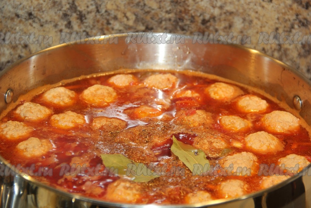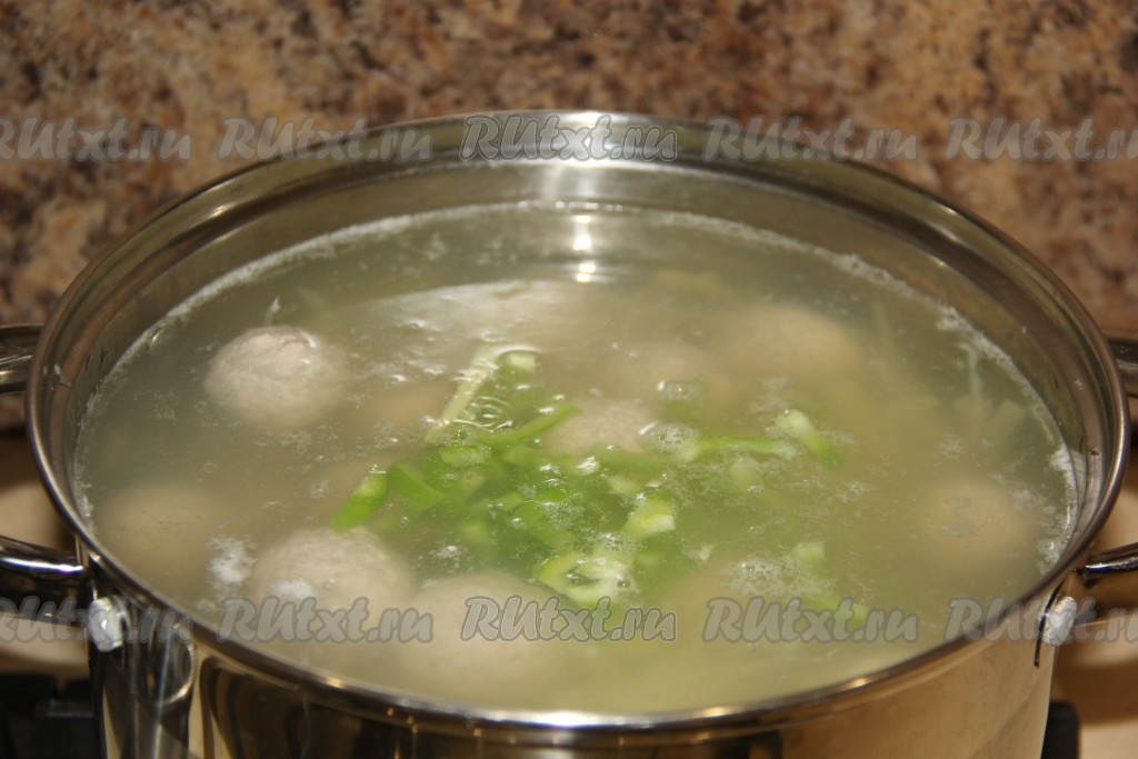 Когда капуста с картошкой проварятся минут 10, опустить фрикадельки в кастрюлю.