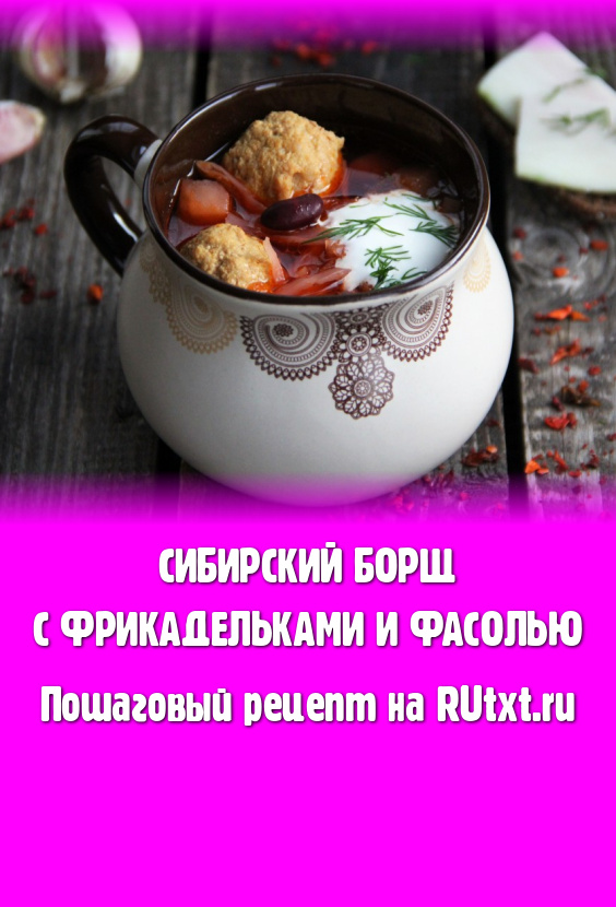 Сибирский борщ готовится с мясными фрикадельками и фасолью. Фарш для фрикаделек можно использовать куриный, свиной или смешанный (свинина + говядина, свинина + курица и т.д.). Борщ получается очень вкусным, сытным, ароматным, насыщенным. Я варила с консервированной фасолью, можно при желании заранее отварить сухую фасоль. Готовится этот борщ просто, хоть и состоит из достаточно большого количества ингредиентов. Поверьте, с таким первым блюдом справится любая хозяйка! Подавать борщ можно со сметаной и зеленью, положив в каждую тарелку по несколько фрикаделек.
