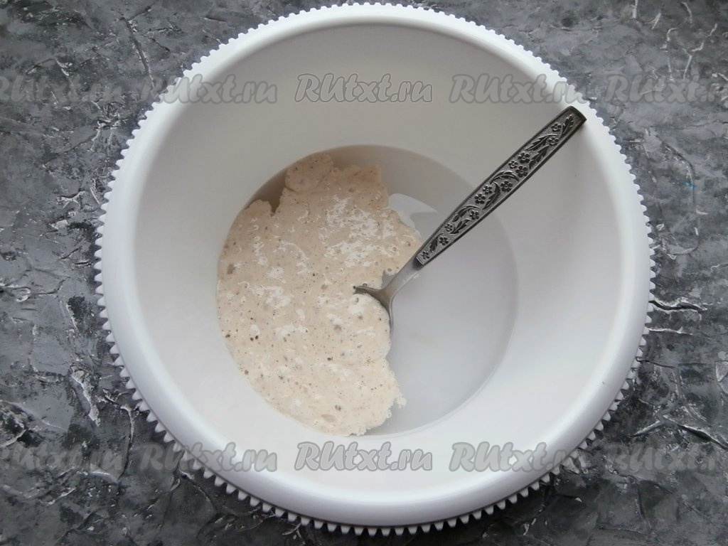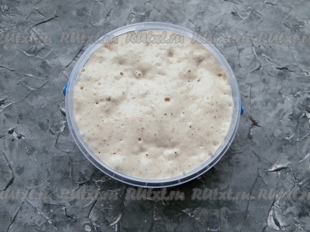 Закваска должна быть сильная (моей - 1 месяц) и на пике, то есть после подкормки закваска должна запузыриться и увеличиться в 2-3 раза.