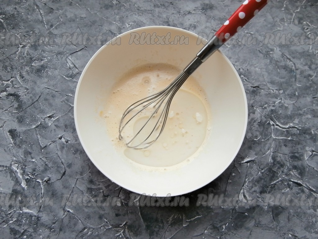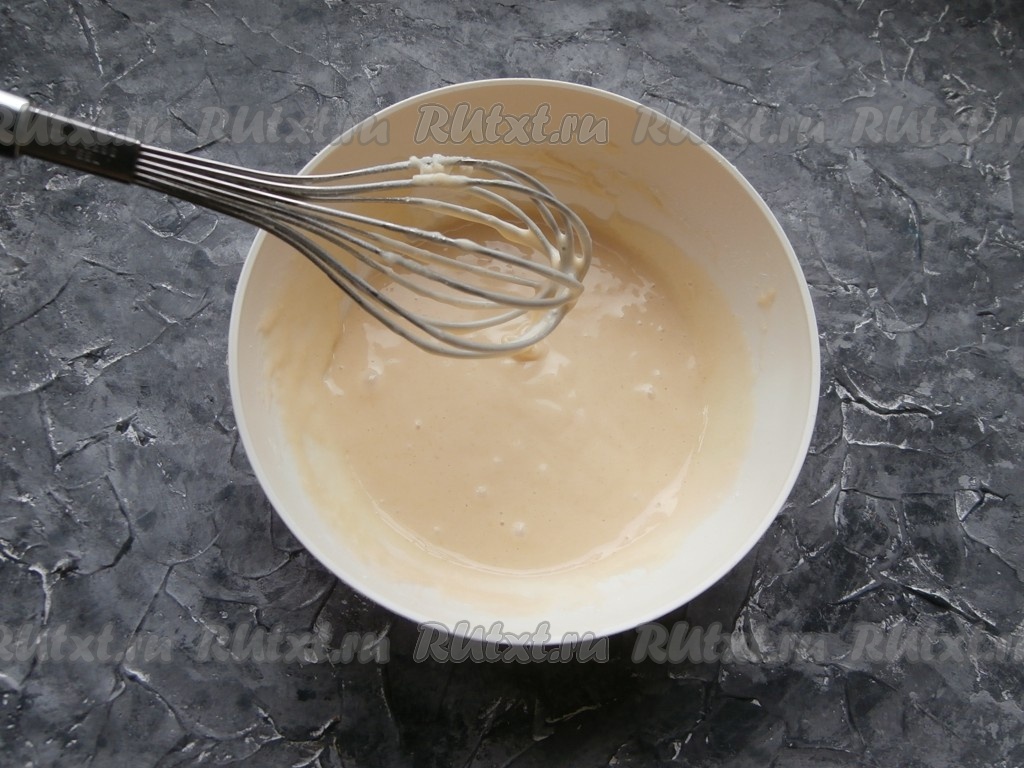 Венчиком замесить тесто, похожее по консистенции на негустую сметану.