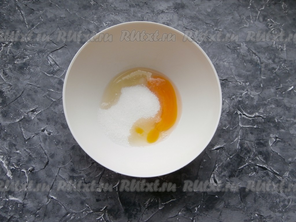 В другую миску разбить яйцо, добавить соль, сахар и ванилин.