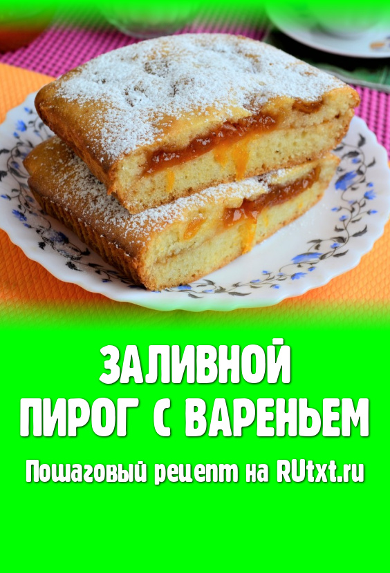 Достать форму из духовки, дать выпечке немного остыть, затем переложить на решётку и оставить до полного остывания. Очень вкусный, ароматный, нежный остывший заливной пирог с вареньем посыпать сахарной пудрой и можно подавать к чаю.