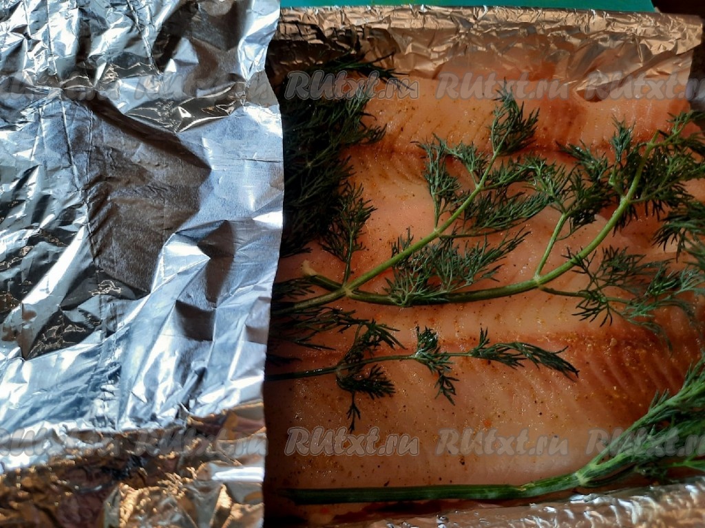 Накрыть филе щуки с овощами и веточками зелени листом фольги так, чтобы рыбка была закрыта со всех сторон, и отправить в заранее разогретую до 180 градусов духовку на 35-40 минут.