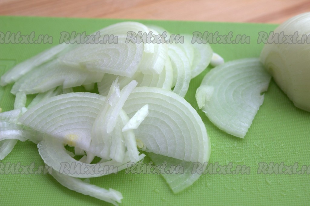 Очистить и нарезать полукольцами лук.