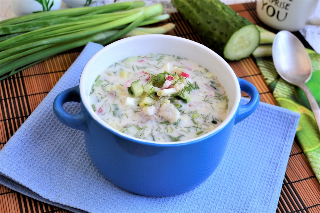 Если вы предпочитаете новые, необычные вкусы в еде, предлагаю попробовать окрошку с селёдкой. Я давно хотела приготовить это блюдо, которое попробовала однажды у знакомых. Окрошка, к моему удивлению, получилась вкусной и интересной. Селёдка придаёт блюду своеобразный привкус, но он не навязчивый и лёгкий. Думаю, это необычное и вкусное блюдо стоит попробовать, тем более и сочетание ингредиентов в нём очень удачное!
