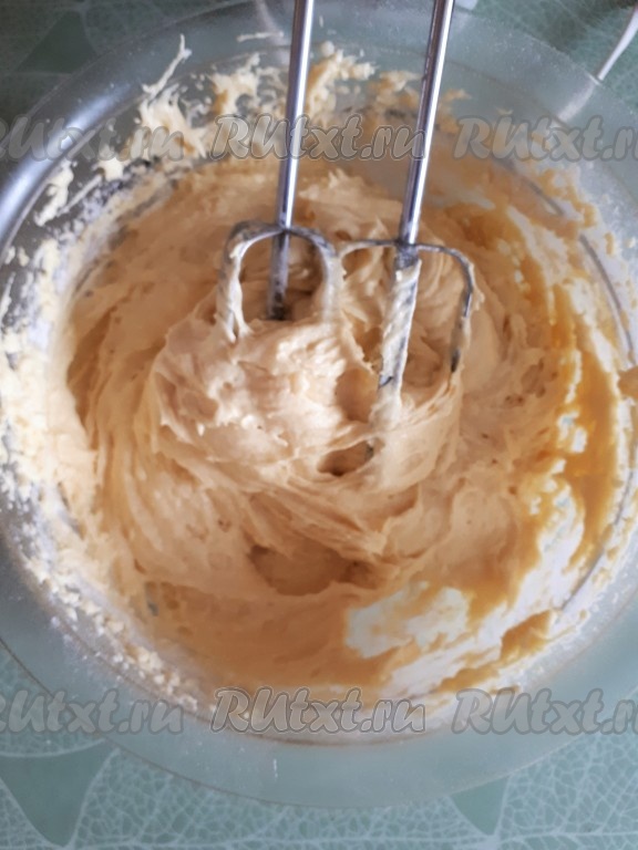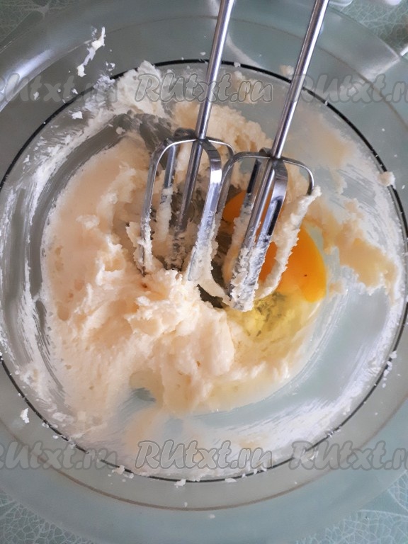 Сливочное масло комнатной температуры взбить с сахаром с помощью миксера до светлой, пышной массы.