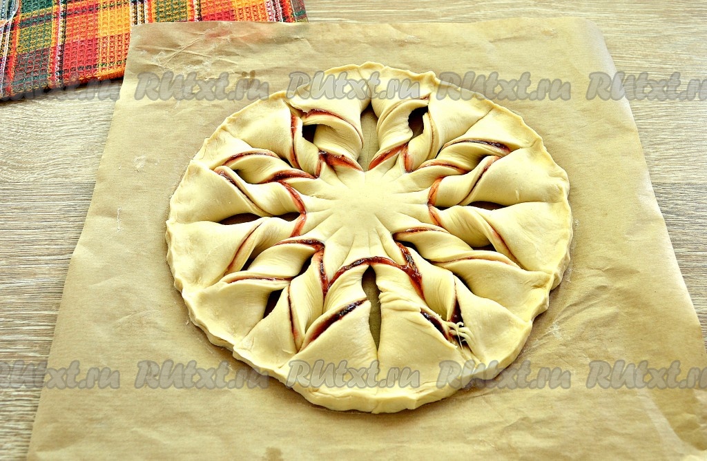Отправить пирог-цветок в разогретую до 180 градусов духовку на 30 минут.