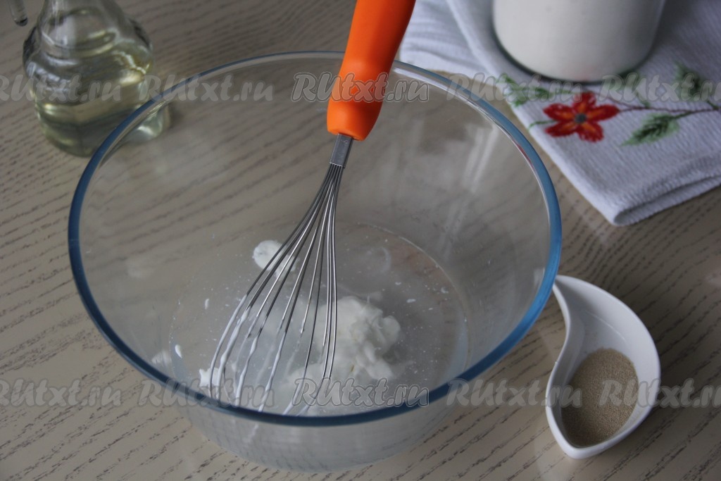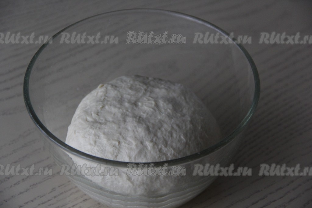Замесить мягкое и нежное тесто, выложить его в миску, заранее смазанную растительным маслом. Миску с тестом накрыть пищевой плёнкой и поставить в тепло на 1 час.