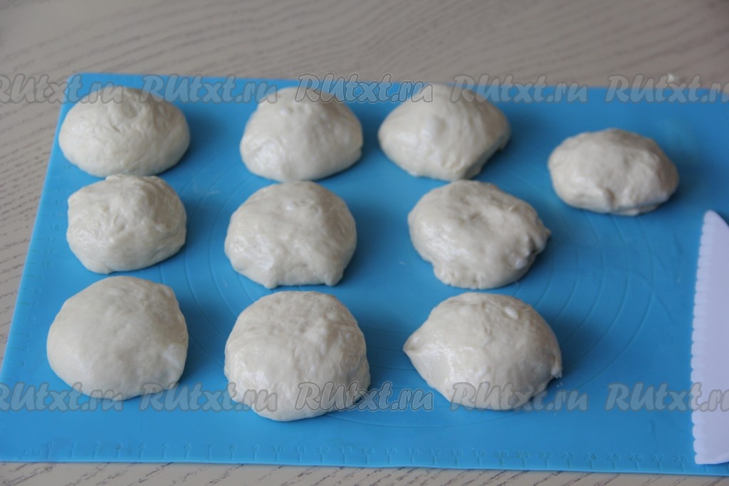 Тесто выложить на силиконовый коврик. Оно будет слегка липкое, разделить на 10 частей.