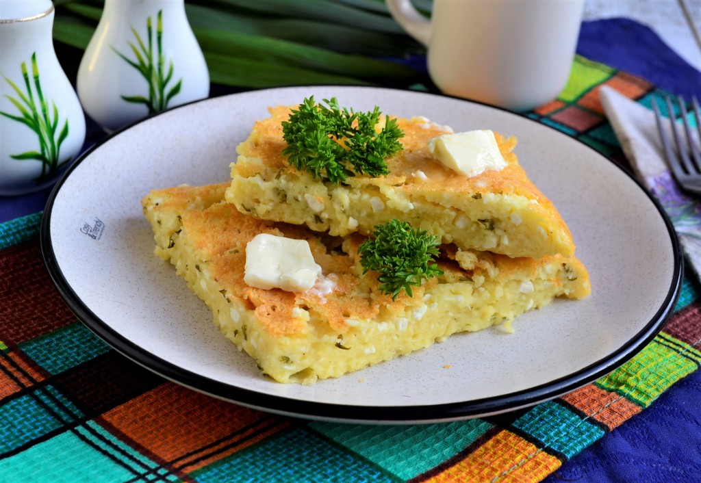 Снизу ленивое хачапури, приготовленное с творогом в духовке, немного поджарится, поэтому его нужно перевернуть на тарелку и убрать бумагу. Щедро смазать очень вкусное хачапури сливочным маслом, нарезать на части и горячим подавать к столу.