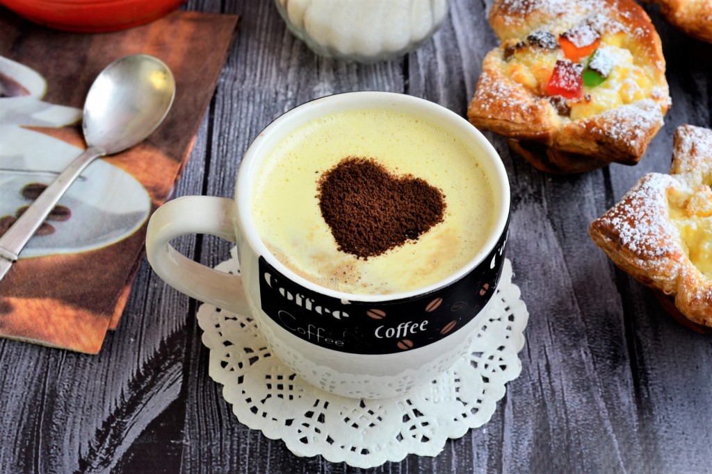 Теперь вкуснейший кофе по-польски с желтком можно подавать к столу. А ещё такой кофе можно украсить какао-порошком в виде рисунка с помощью трафарета.