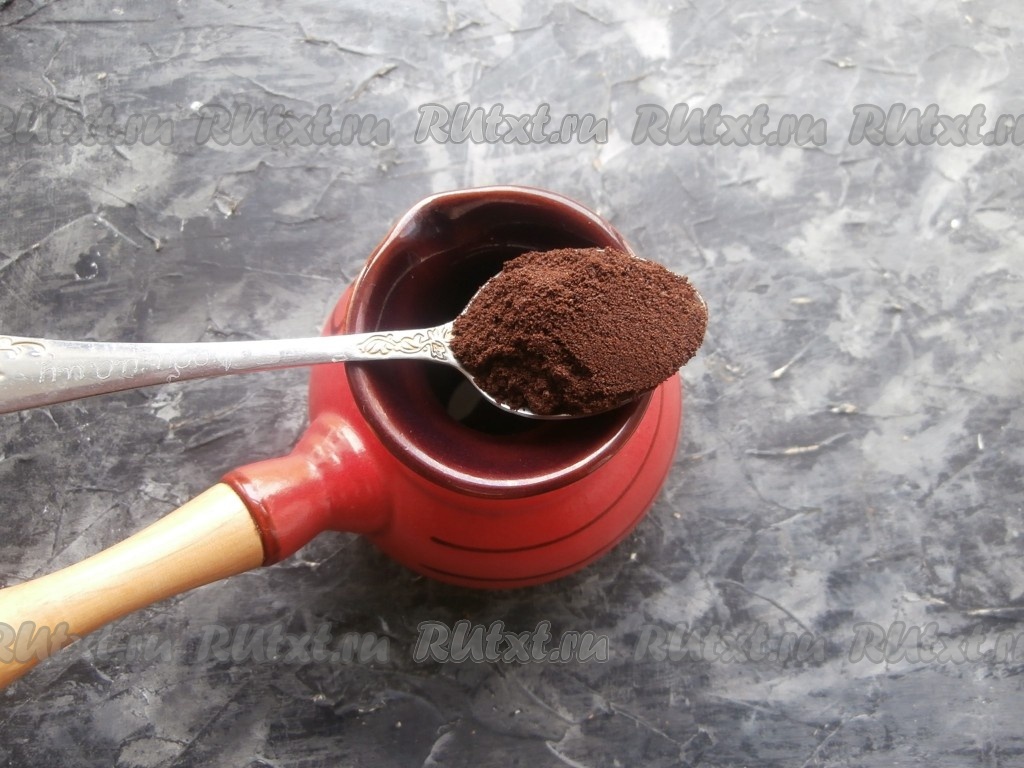 Сварить натуральный кофе обычным для вас способом. Я в турку наливаю воду комнатной температуры, всыпаю свежемолотый кофе, довожу до кипения на медленном огне и отставляю турку на 15 секунд. Опять довожу до кипения и кофе готов.