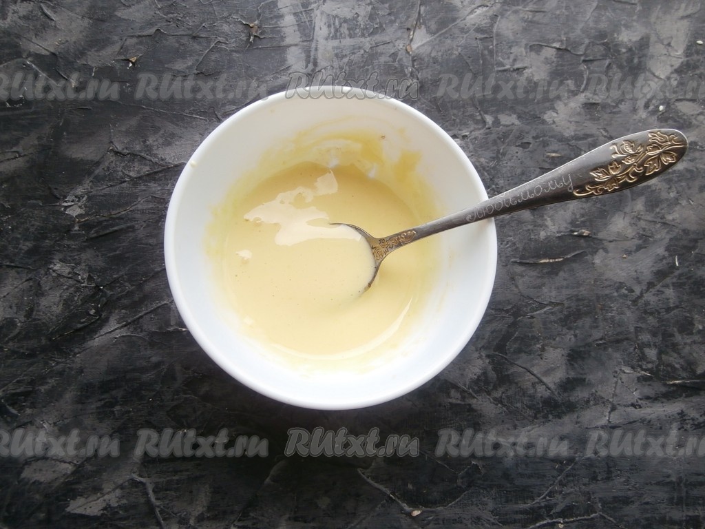 Взбить желток с сахаром венчиком (или миксером) до светлой, пышной, однородной массы.
