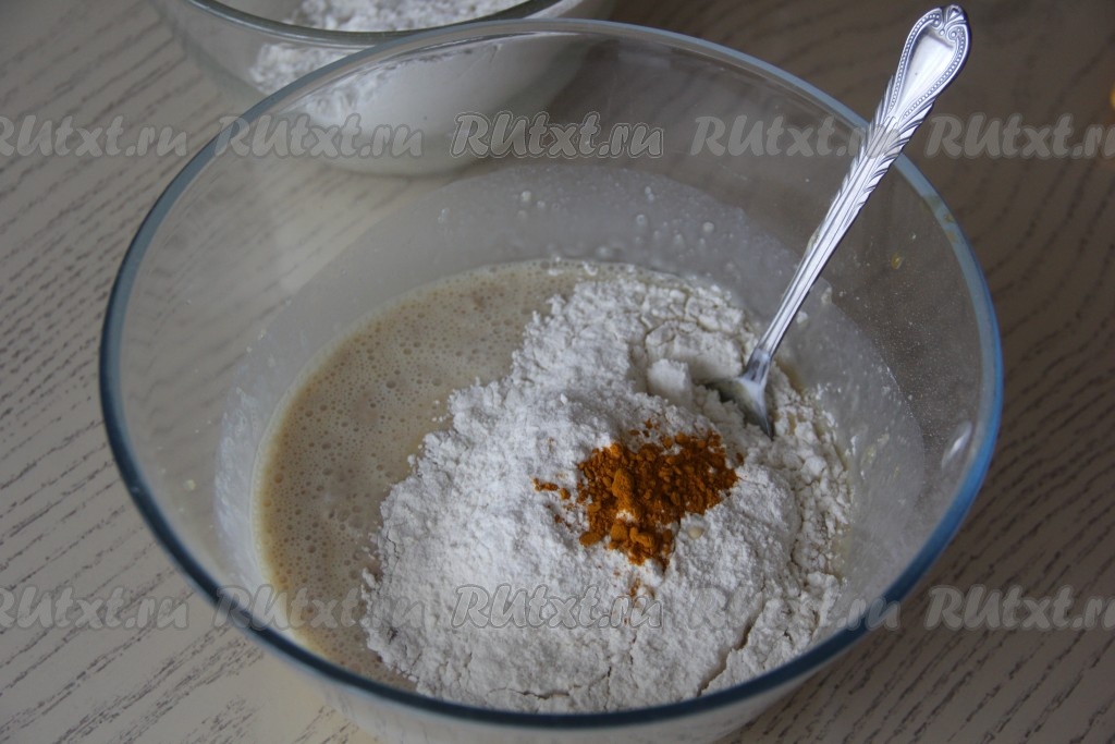 Оставить тесто в миске на 1 час в тепле. Я накрыла миску полотенцем. Тесто увеличится в объёме.