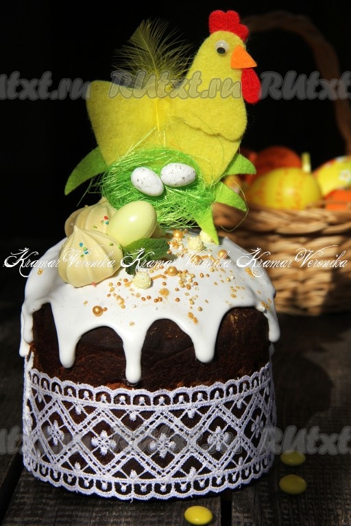 Готовую глазурь слегка остудить, а затем нанести на верхушку куличей. Сразу посыпать цветной посыпкой или украсить по желанию.