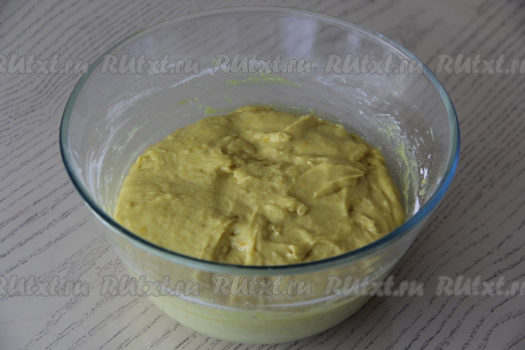 Перемешать тесто ложкой, оно получится вязким и липким, но муку добавлять не нужно.