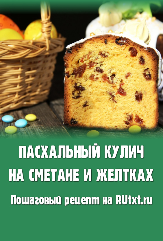 В этом году приготовила пасхальный кулич на сметане и желтках. Кулич получился очень вкусным, волокнистым, красивого жёлтого цвета. В качестве добавок в тесто можно использовать изюм, орехи, цукаты или шоколадные капли. Украсить кулич можно по желанию, я предлагаю покрыть кулич глазурью на желатине.