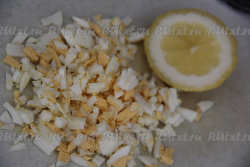 Пока рыбные тефтели тушатся в мультиварке, мы можем приготовить вкусный польский соус к рыбе. Яйца, сваренные вкрутую (в течение 8-10 минут с момента начала кипения воды), почистить и мелко нарезать.