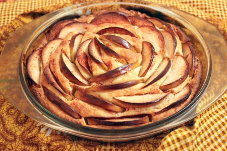У меня была круглая стеклянная форма, я разместила яблоки по кругу.