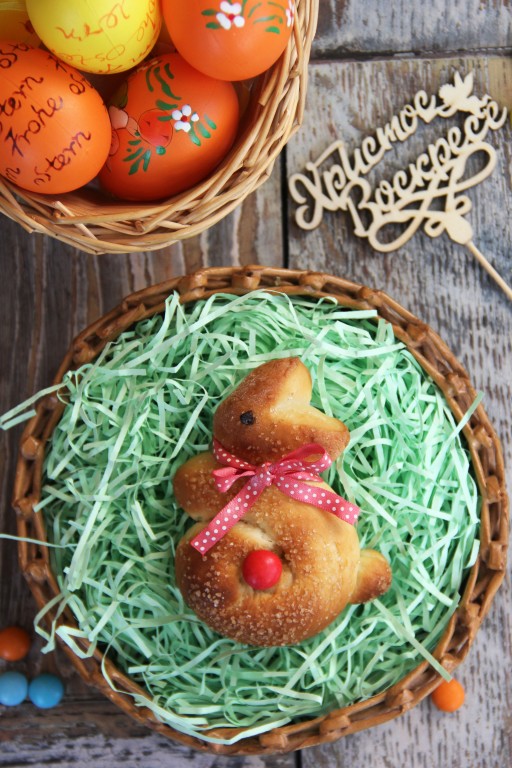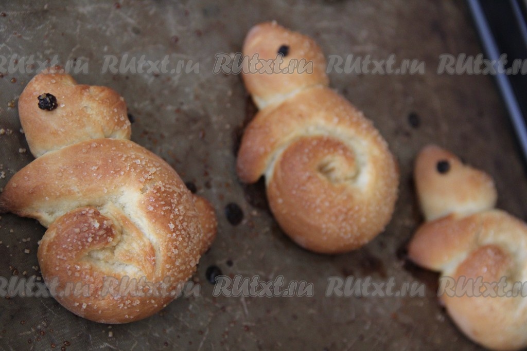 К пасхальному праздничному столу можно испечь булочки в виде зайчиков из дрожжевого теста. Выпечка получается и очень красивой, и вкусной. Я сделала булочки небольшого размера, ими можно украсить верх кулича или побаловать своих детей в светлый праздник Пасхи. В тесто я ещё добавила цедру апельсина, поэтому мои зайчики получились с тонкой ноткой цитрусовых. Такая выпечка отлично украсит стол в Светлый праздник Пасхи!