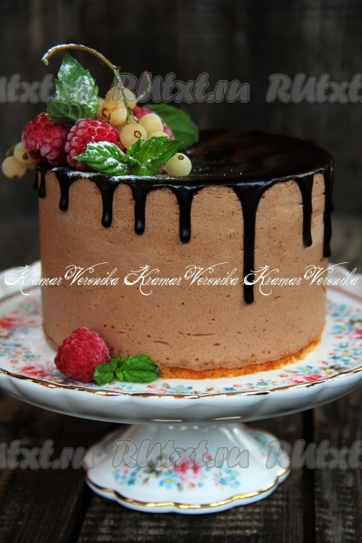 Украсить торт растопленным шоколадом и свежими ягодами. Вот такой красивый торт получился.