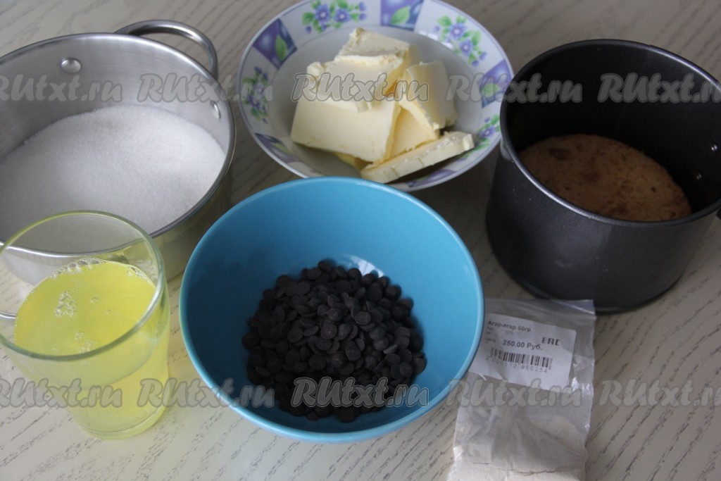 Готовый бисквит достать из формы, переложить на решётку и оставить до полного остывания. Подготовить продукты для приготовления суфле. Агар-агар можно купить в том же отделе, где продаётся и желатин. Белки для приготовления суфле нужно заранее хорошо охладить. Сливочному маслу нужно дать хорошо согреться при комнатной температуре, чтобы оно стало мягким.