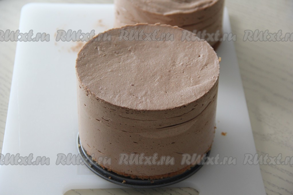 Поставить формы с тортом в холодильник на ночь. У меня получилось 2 высоких тортика диаметром 12 см. Из указанных в рецепте ингредиентов можно сделать один большой торт, но он не будет таким высоким.