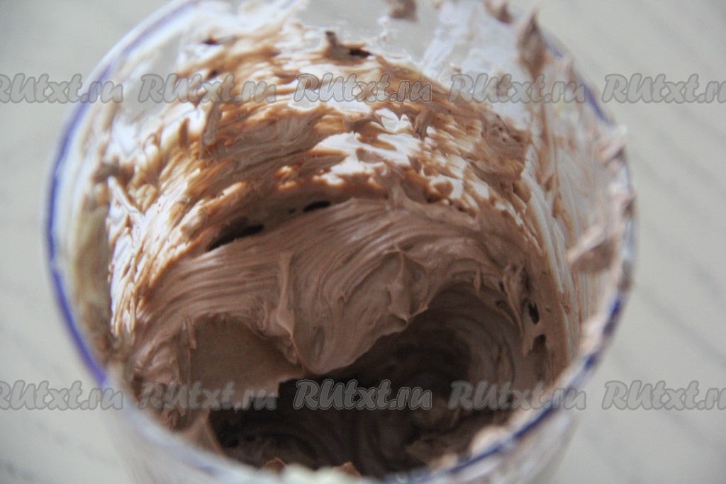 К взбитому маслу добавить не горячий растопленный шоколад и взбить миксером в течение пары минут (до однородности).