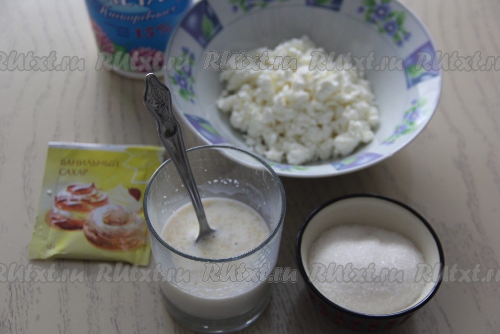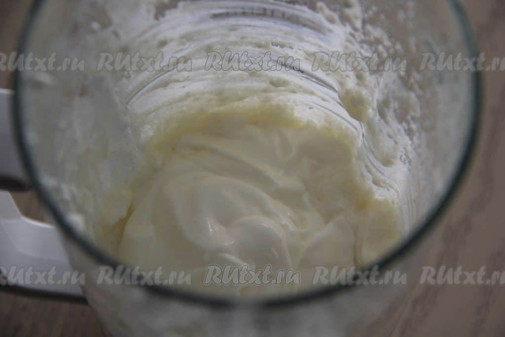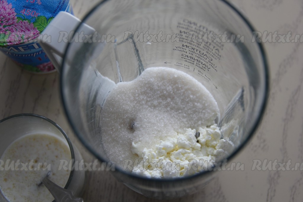 Пробить смесь творога, сметаны и сахара погружным блендером до однородного состояния.