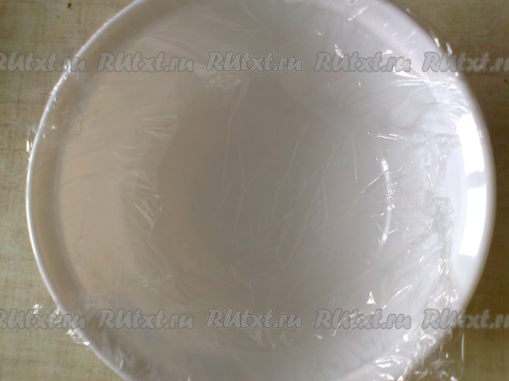 Дно глубокой миски (у меня салатница) застелить пищевой плёнкой.