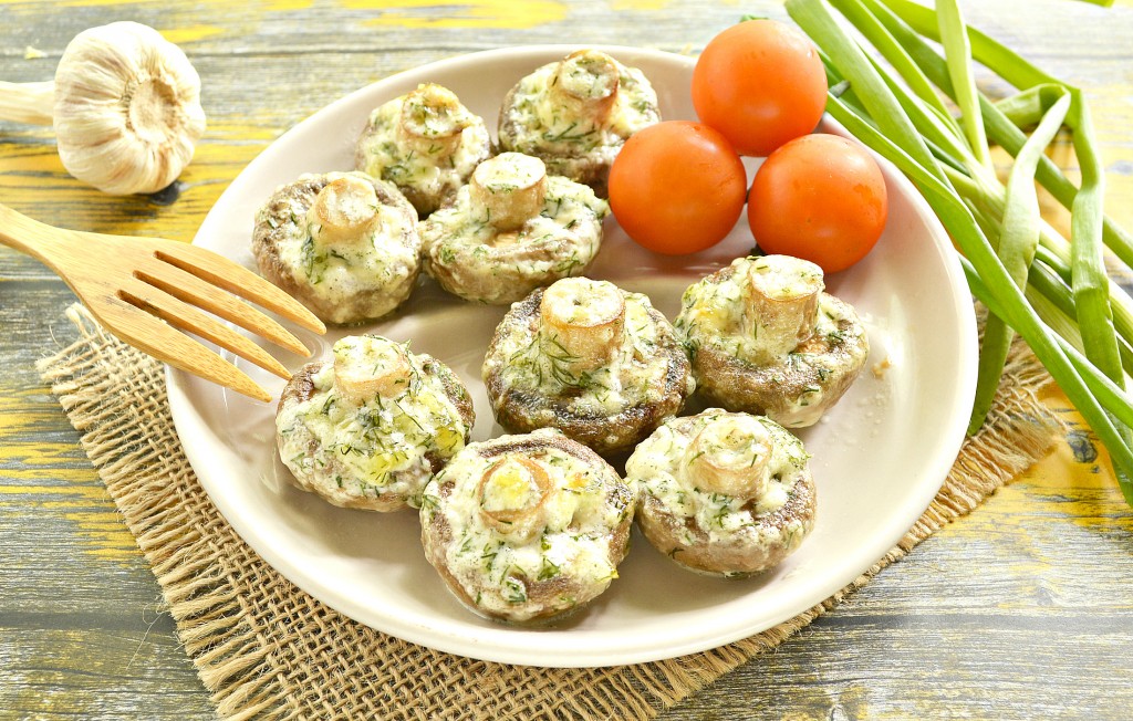 Сочные, аппетитные шампиньоны, запечённые в духовке в майонезе с чесноком, сразу подавайте на стол. В охлаждённом виде вкус таких грибочков тоже хорош!