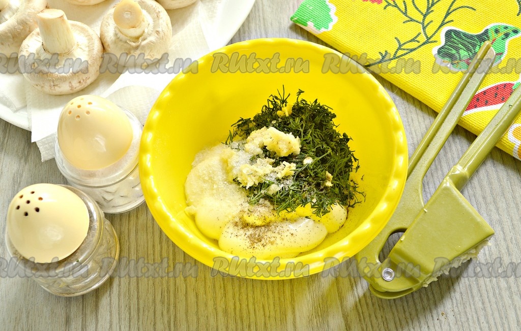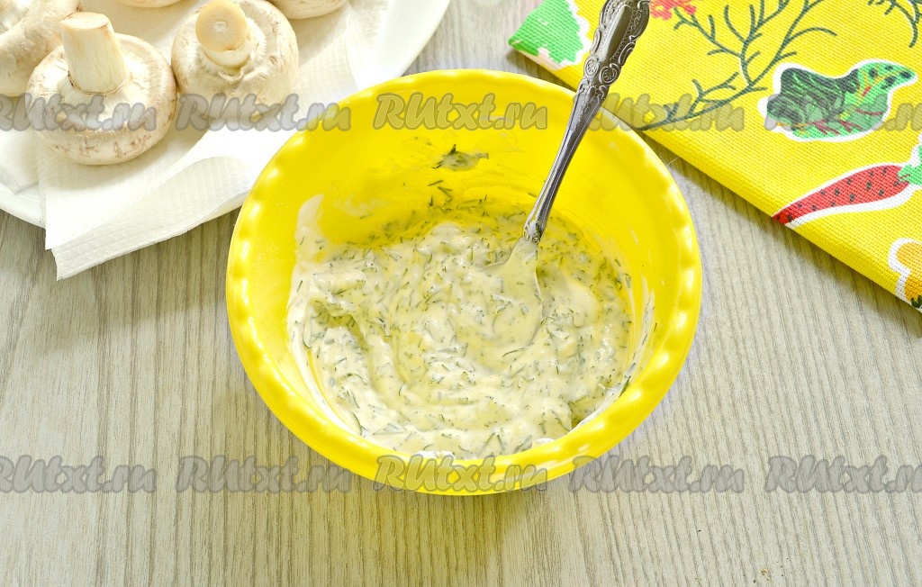 Тщательно перемешать и соус для шампиньонов из майонеза с чесноком и зеленью готов.