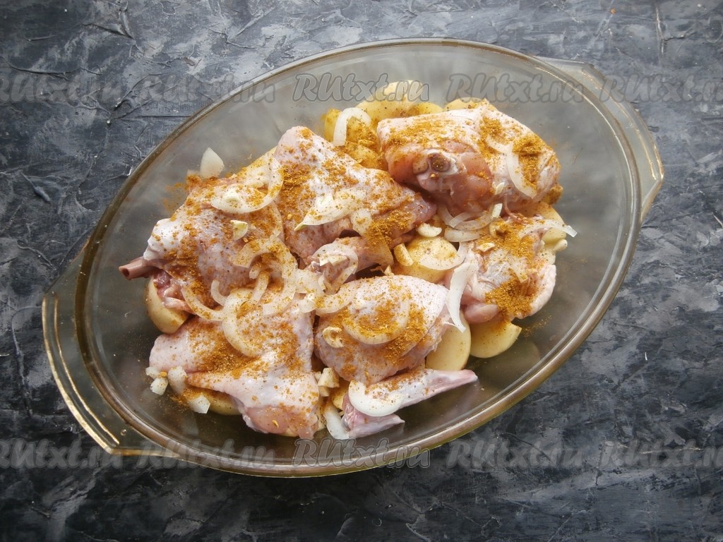 Молодой картофель с курицей в духовке