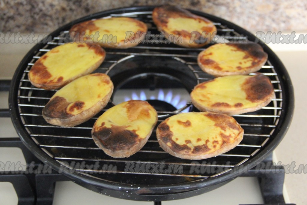 Моя подруга подарила мне чудо-сковороду гриль-газ, на которой можно приготовить овощи, мясо или рыбу. Я приготовила картошку, она получилась, как на мангале, - рассыпчатая, с тонкой, хрустящей корочкой. Такую картошечку можно подать с любым соусом, мясом или рыбой. Готовится ну очень просто, картошку стоит только посолить, выложить на решётку сковороды гриль-газ, отправить на огонь, а затем один раз перевернуть и у вас на столе будет наивкуснейший картофель!