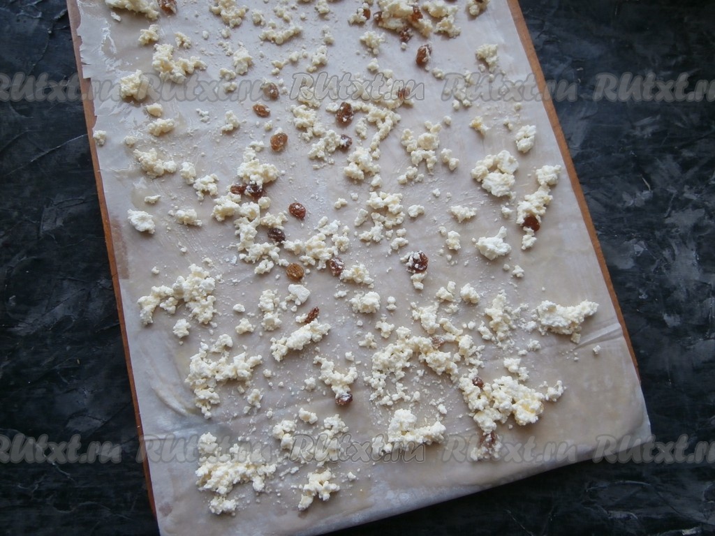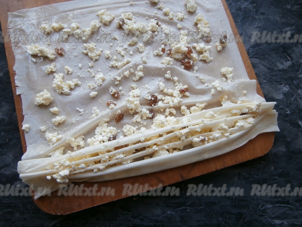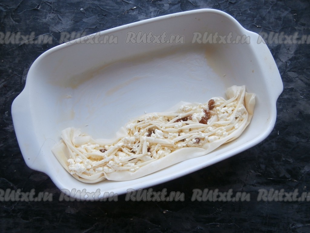 Таким же образом сформировать и выложить в форму ещё 2 заготовки из тесто фило с творогом.