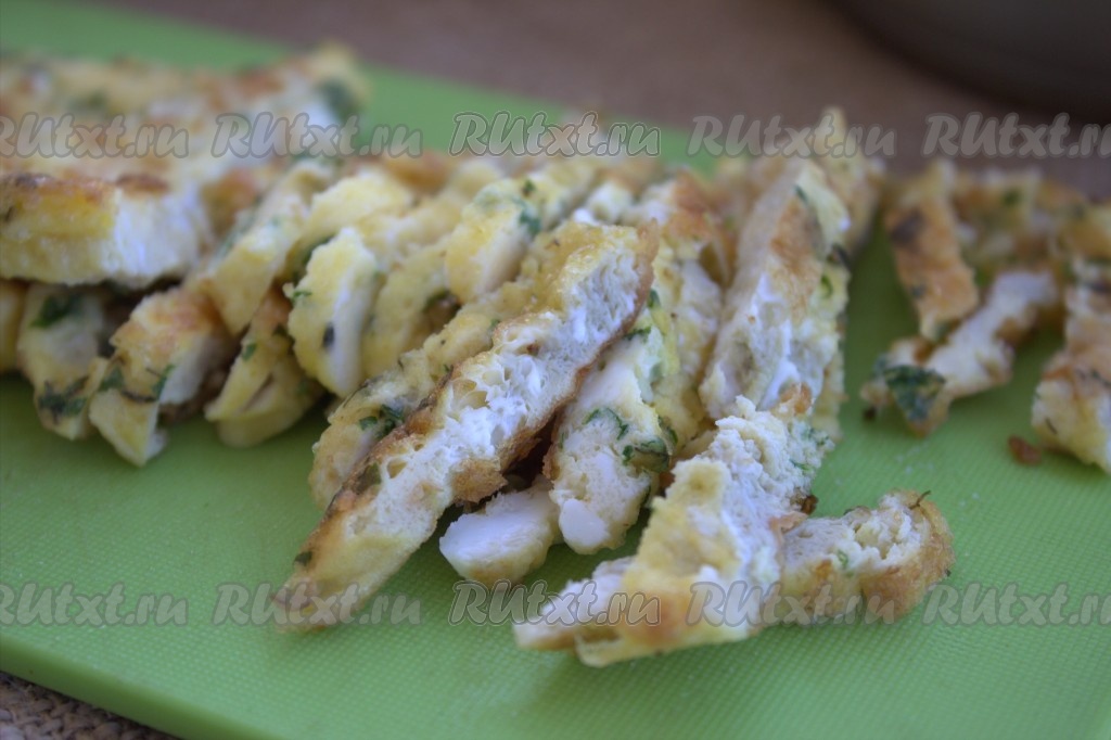 Дать блинчику остыть и нарезать на небольшие брусочки.