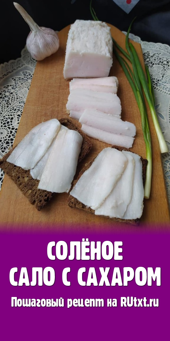 Многие ошибочно считают, что сало - это сплошной жир и никаких полезных веществ. А между тем, вот что о пользе сырого, солёного сала (не варёного, не копчёного, не жареного) пишет вице-президент научного сообщества гастроэнтерологов Валерий Максимов: "При попадании в двенадцатиперстную кишку сало вызывает мощный рефлекс желчевыделения, поскольку является чистым животным жиром. Желчный пузырь сокращается и из него выходит застойная желчь. Сало способствует здоровому естественному очищению печени и помогает избежать застоев желчи в ней. А поскольку после естественного выброса желчи организм сразу приступает к выработке новой её порции, используя собственный холестерин, то этот процесс как раз способствует снижению уровня «вредного» холестерина. В этом и состоит важнейший положительный эффект употребления в пищу сала. Данный продукт крайне полезен, и стоит разобраться с научной стороной вопроса, прежде чем незаслуженно обвинять сало в каком-либо вреде. Ученые из Мюнхенского университета исследовали состав этого продукта с помощью современных технологий. И выяснилось, что свиное сало содержит арахидоновую кислоту. А она относится к полезным Омега-6 ненасыщенным жирным кислотам. Арахидоновая кислота входит в состав клеточных мембран, является частью ферментов сердечной мышцы. И даже участвует и в липидном обмене! То есть контролирует образование "хорошего" и "плохого" холестерина. Есть ещё одна особенность этого простого продукта - оно не накапливает в себе радионуклиды. И даже, как доказали канадские токсикологи из медколледжа Торонто, способствует выведению ядовитых веществ из организма человека." Я предлагаю засолить сало с добавлением сахара. Да, да, именно с сахаром! Не пугайтесь сахара, он вытянет всю жидкость из сала и оно станет более плотным, а солить будем в соли! Сало получается и вкусным, и ароматным, попробуйте!