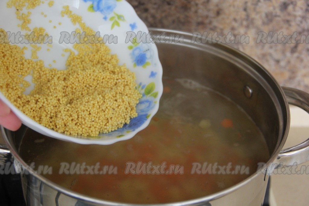 По желанию, можно добавить в уху пшено (пшено нужно предварительно промыть в проточной воде), варить 5 минут.