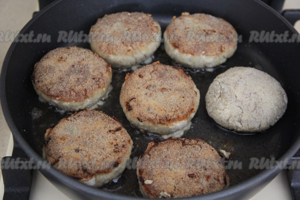Жарить рыбные котлетки с двух сторон до золотистой корочки на среднем огне. У меня получилось 18 котлет по 95 грамм.