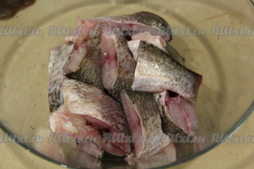Нарезать рыбу на кусочки.